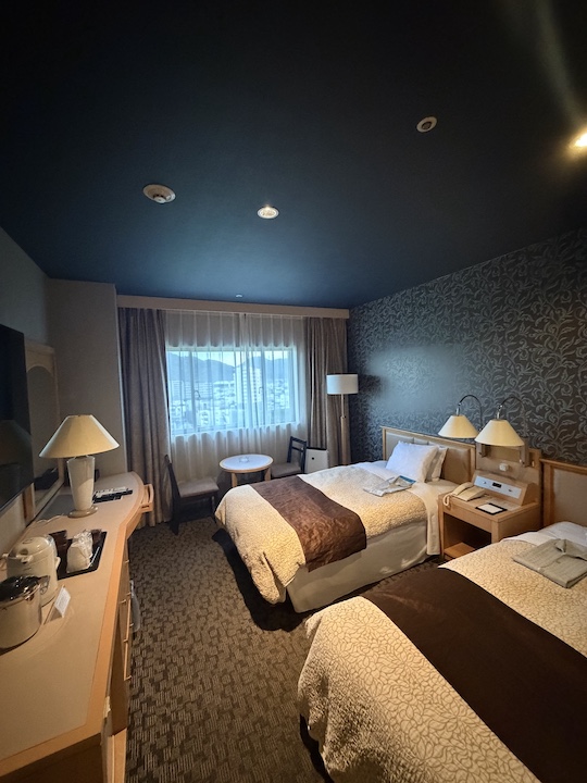 スタッフの対応も非常に洗練されており、当日予約での宿泊にもかかわらず、空室状況を見て「ゆったりとお過ごしください」とシングルからツインルームへアップグレードしてくれるなど、おもてなしの心を感じるサービスが印象的でした。