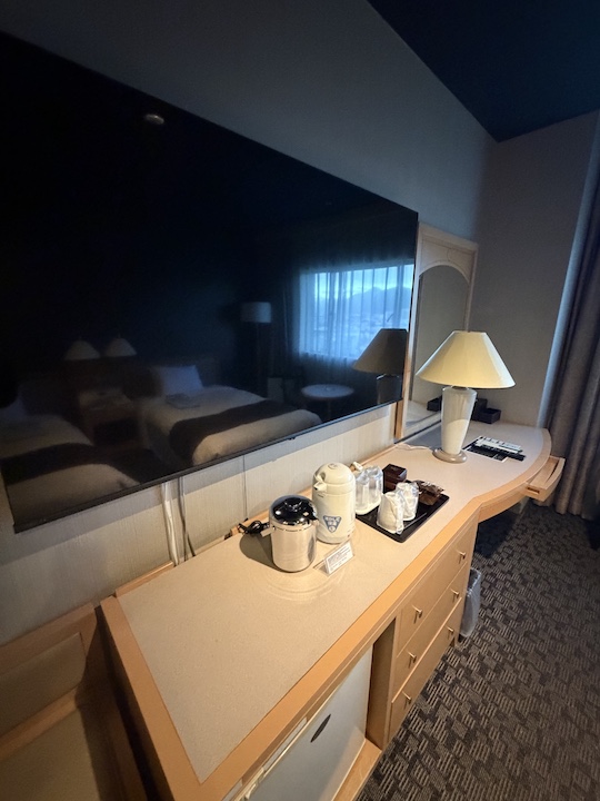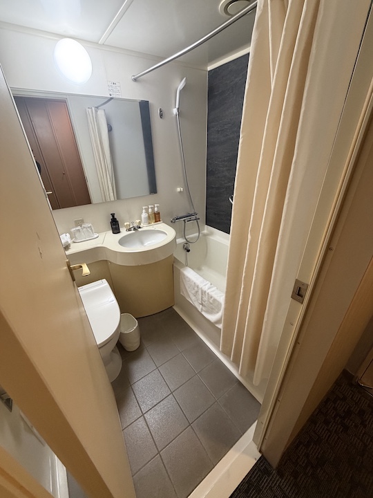 特に嬉しいのは、今回予約した部屋は一人部屋だったのですが、ベッドがダブルサイズで用意されていることです。十分な広さで、旅の疲れを心ゆくまで癒せます。ベッド周りのスペースも、一人で過ごすには十分広く設計されており、窮屈さは感じません。