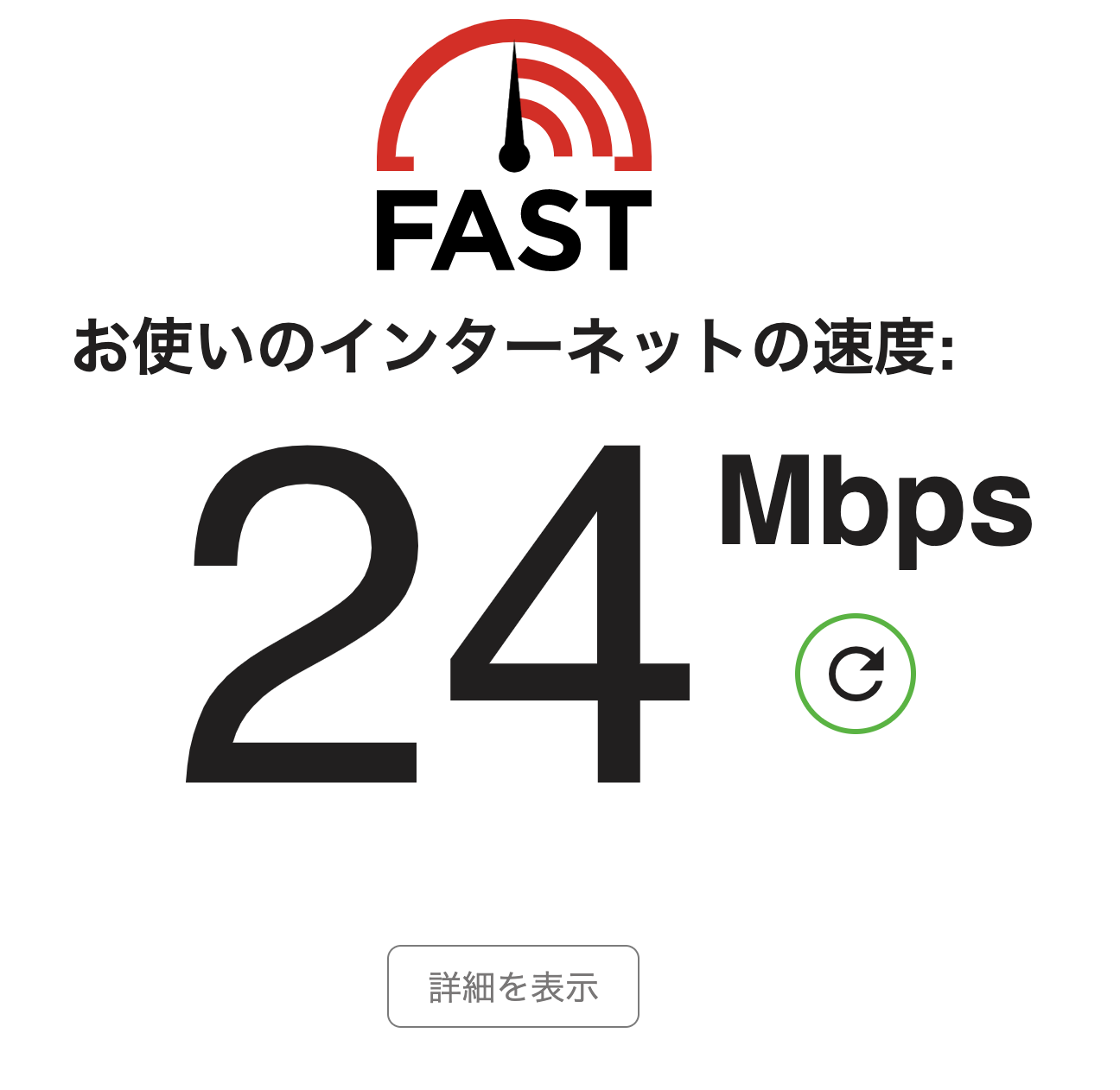 客室の通信環境につきましては、実測で24Mbps程度と、高速とは言えない状況です。